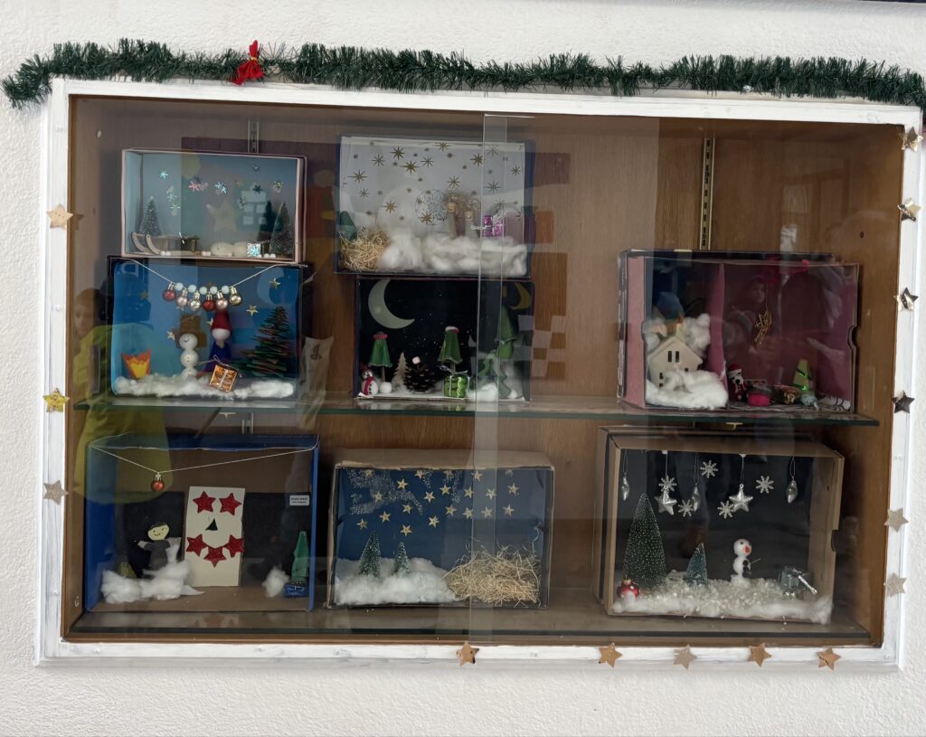 Mit viel Kreativität und Liebe zum Detail gestalteten die Kinder der vierten Klasse im November weihnachtliche Schuhkartons. Aus den individuell gestalteten Kartons entstand ein besonderer Adventskalender, der in der Adventszeit die ganze Schulgemeinschaft erfreute.